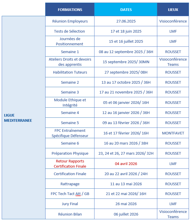 - Bloc 3 : être capable de diriger une équipe au minimum de niveau régional (U15 à Seniors masculins ou féminines).