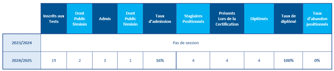 L’épreuve totale des tests de sélection est notée sur 60 points. Seuls les candidats ayant obtenu la moyenne de 30/60 pourront être admis en formation, sous réserve du nombre de places disponibles.