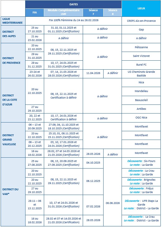 Les dates et lieux de la formation