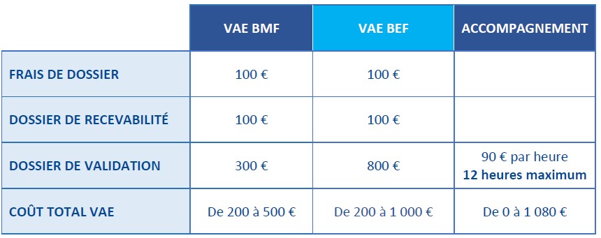 La Validation des Acquis de l’Expérience permet à un individu ayant suffisamment d’expérience d’obtenir un titre à finalité professionnelle. La procédure d’obtention du BMF ou du BEF par la VAE est composée de trois étapes :